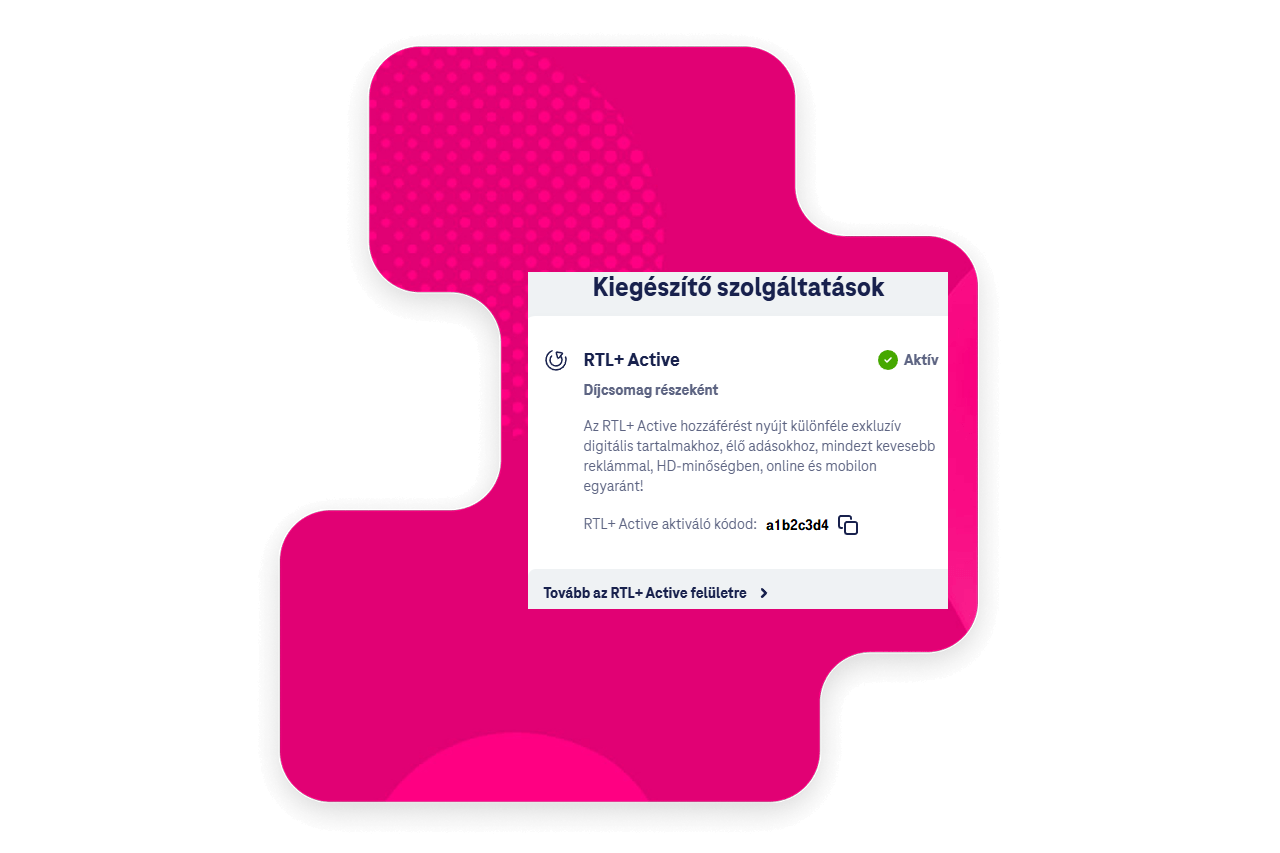 A TV előfizetésedhez járó, egyedi RTL+ Active aktiváló kódodat a Telekom fiókodba belépve az